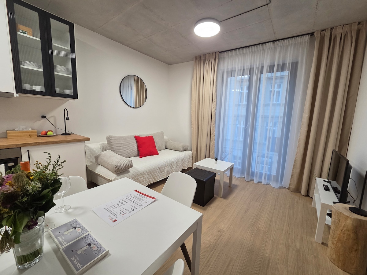 Goditi un soggiorno unico in un ampio appartamento di 62 m² con una terrazza di 6 m² e una splendida vista. Il giardino di 700 m² nel cortile interno garantirà un perfetto relax per tutta la famiglia. WiFi ⚡ veloce ideale per lavoro e divertimento Interni 🛋 eleganti e originali, vi sentirete come a casa 📍 Ottima posizione vicino al centro, ma in un ambiente tranquillo 🚆 Perfetti collegamenti con i mezzi pubblici per Brno, a pochi passi dalla casa 🛍 Tutti i servizi pubblici, i centri commerciali, i ristoranti e i servizi a pochi passi Vieni a goderti Brno al massimo!