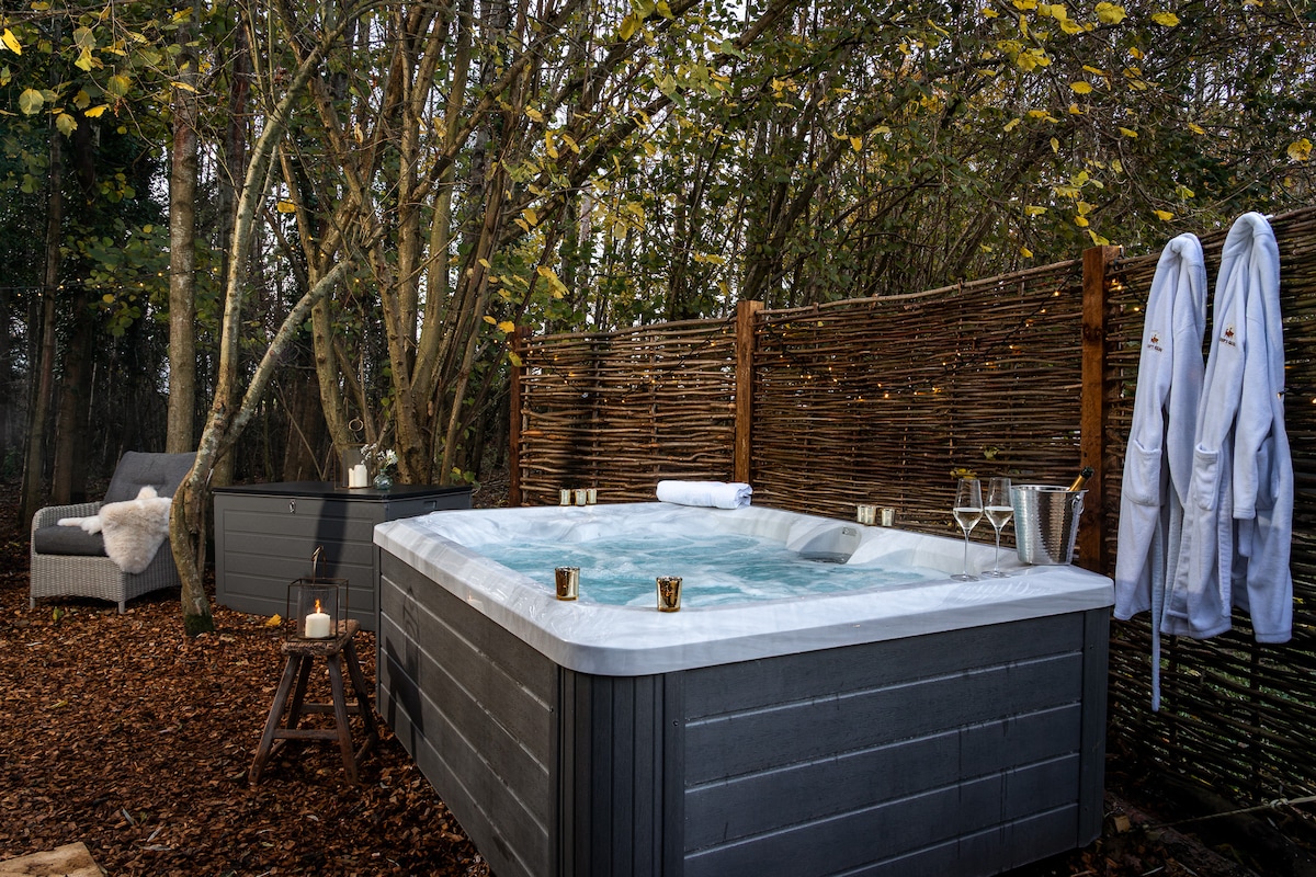 Lodge con tende safari a Burnham e vasca idromassaggio riscaldata a legna