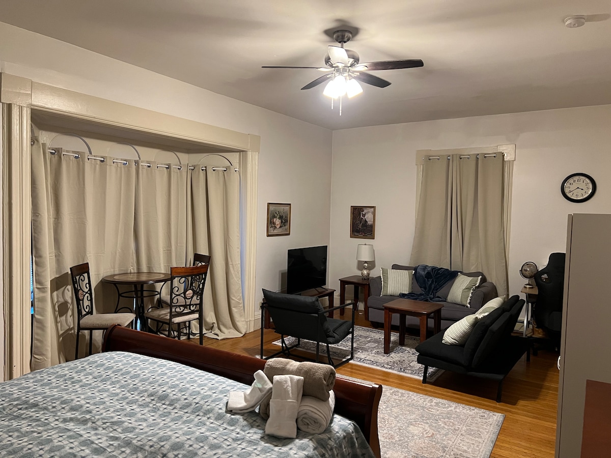 Come stay at the guest suite in our quirky, historic home in Jamaica Plain, one of Boston's most diverse and exciting areas. The suite is on the ground floor with a private patio and private entrance. Guests enjoy their own private space with a bathroom, queen size bed, and work area. Located 2 blocks away from the Stony Brook Orange line “T” and a 10 minute walk to local restaurants and super markets.