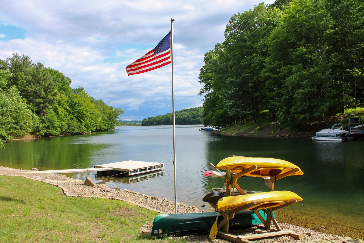 Benvenuti nella nostra bellissima casa sul lago DuBois, PA Bimini, con un molo privato con vista mozzafiato sul lago. Questo spazioso rifugio include una cucina di fascia alta e completamente attrezzata al piano principale, una seconda cucina al piano di sotto, ampie camere da letto, una camera familiare e una veranda con vista sul lago. Goditi 3 kayak, giubbotti di salvataggio e canne da pesca, ideali per pescare, nuotare, fare kayak o rilassarti nella vasca idromassaggio. La sera, riunisciti intorno al focolare in riva al lago per arrostire gli s'more e rilassarti in riva al mare!