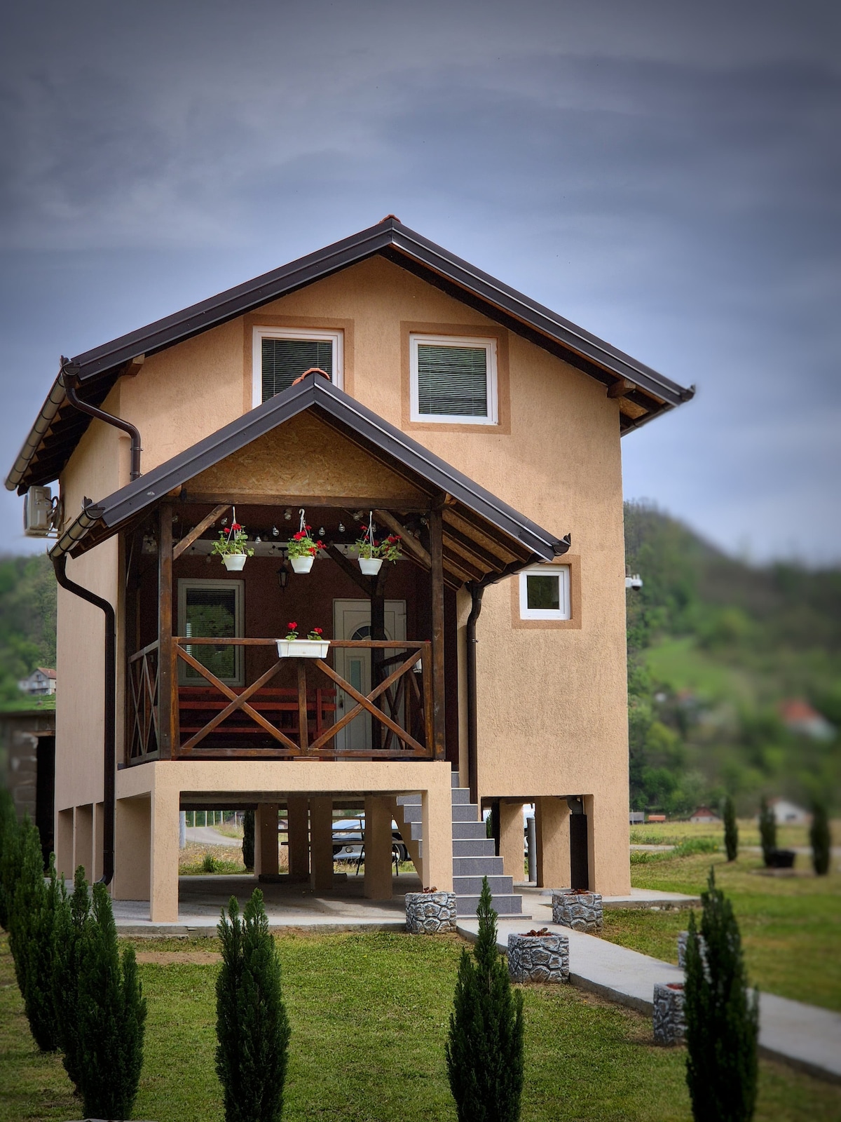 L'affascinante baita sulla riva della Drina si trova nel piccolo villaggio di Drlače, a 12 chilometri da Ljubovija verso Bajina Bašta o a metà strada della regata di Ljubovija. La casa è costruita in legno, pietra e ferro battuto. Come ispirazione per le vecchie case di campagna, inclusa la tecnologia moderna che abbiamo integrato senza disturbare troppo l'atmosfera e il calore del cottage. L'odore del pino nero, il crepitio del fuoco e la vista del nostro bellissimo fiume danno una sensazione speciale di stare a casa ...