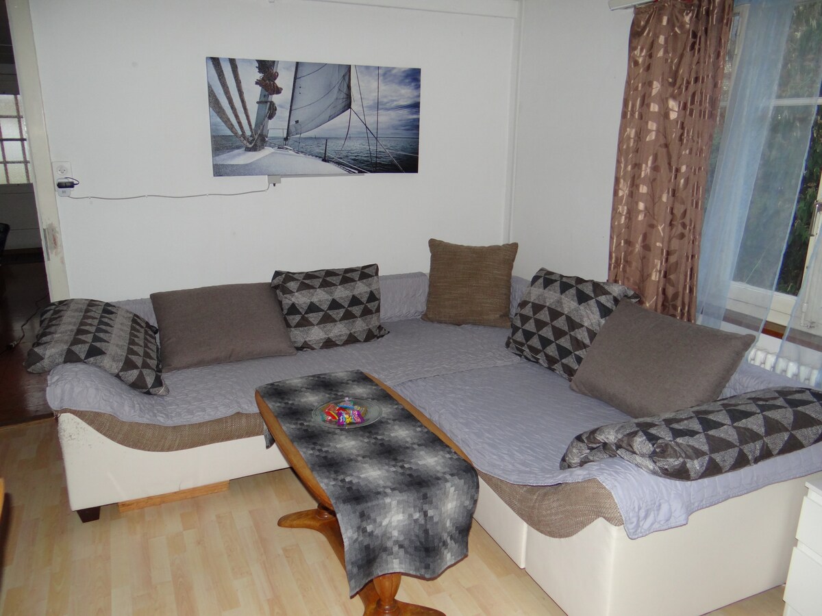 Accogliente e luminoso bilocale con stufa svedese. In pochi minuti a piedi si arriva alle terme di Bad Zurzach. La zona collinare invita a fare gite in bicicletta o passeggiate. Ottimo collegamento con l'autobus. Parcheggio sicuro accanto alla casa. Balcone privato. Ampio bagno con lavatrice e asciugatrice private. Cucina completamente attrezzata con macchina Nespresso, capsule di caffè, bollitore, ecc. Wi-Fi e grande Smart TV con NETFLIX. Il letto matrimoniale Bico-Matraz garantisce un sonno riposante. Giardino e sdraio in comune.