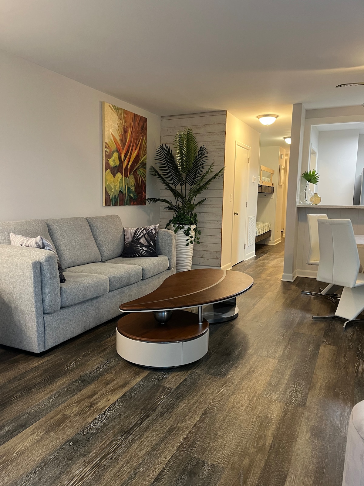 A pochi passi dalla spiaggia, questo appartamento con 1 camera da letto e 1 bagno recentemente ristrutturato si trova in un'ottima posizione in un complesso ben tenuto con una splendida vista sull'acqua di Jinks Creek. La camera privata include un letto king-size, un armadio e una TV con connessione a Internet. Questa unità può ospitare comodamente 4 persone, con un materasso matrimoniale in gel di qualità superiore nel divano letto. Usa la nostra attrezzatura da spiaggia mentre trascorri l'intera giornata in spiaggia e goditi i tramonti dal ponte.