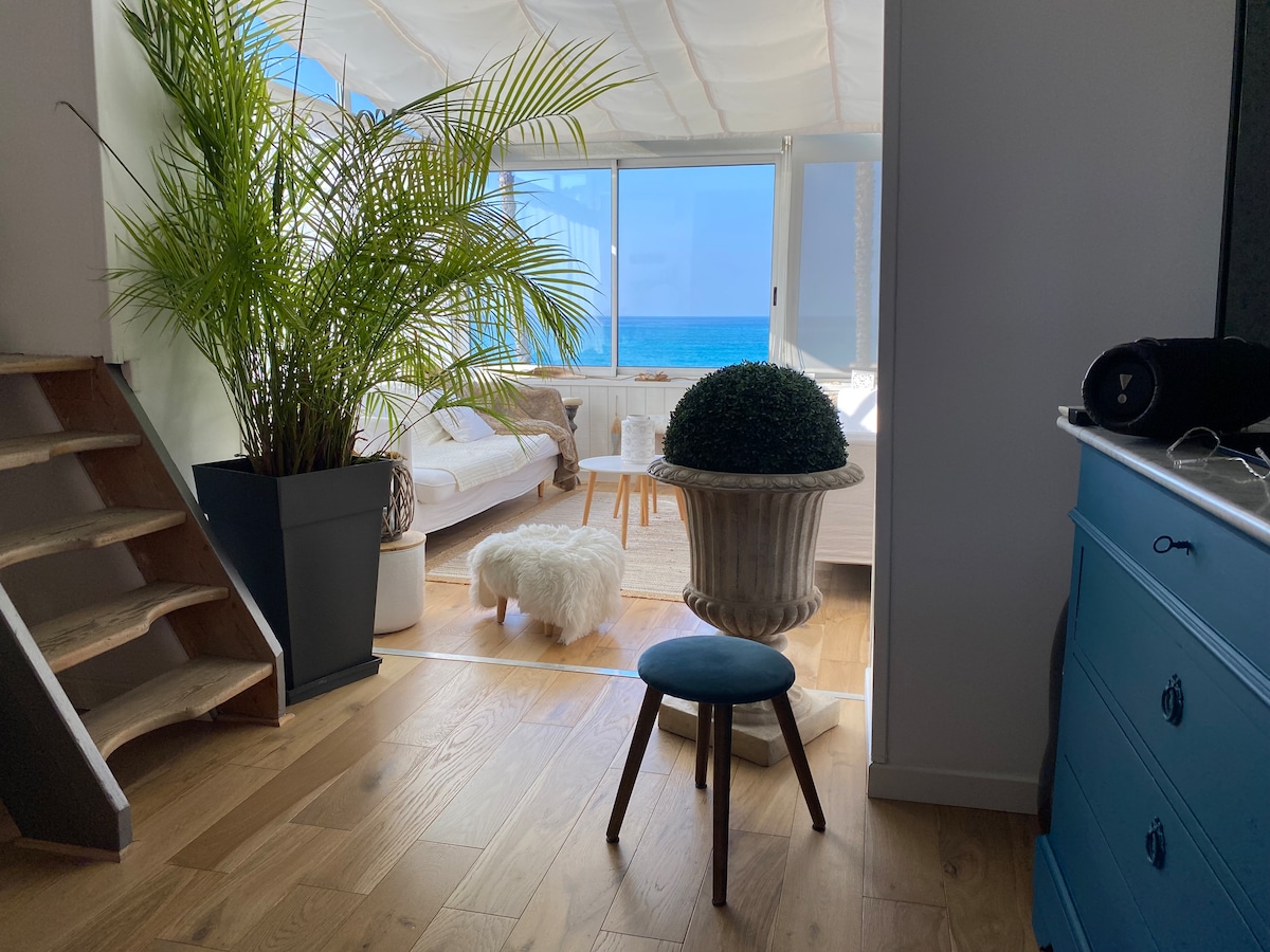 T2 haut de gamme à 30 mètres de la plage, accès et parking privatifs. Rénové en 2025 avec matériaux nobles : parquet chêne, travertin, cuisine sur-mesure, douche à l’italienne. Canapé convertible de luxe (La Maison du Convertible), climatisation intégrale. Linge inclus. Instant rare : café sur le sable ou bain de minuit au bout du jardin. Accès direct au sentier du littoral et au parc de la Méditerranée pour un séjour inoubliable au bord de mer.
