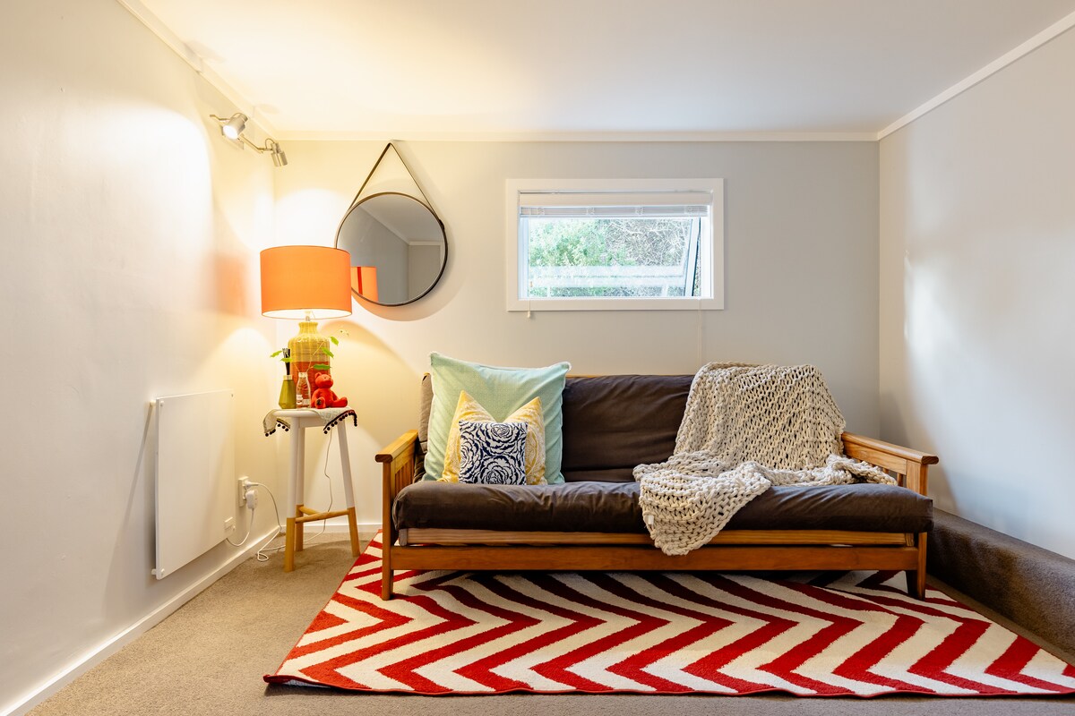Viviamo nel tranquillo sobborgo di Laingholm, a soli dieci minuti in auto da Titirangi. Avrai a disposizione il piano terra della nostra casa di famiglia, che ti offre un soggiorno con camera da letto separata (letto matrimoniale) e bagno con doccia. È presente un angolo cottura con forno a microonde, tostapane, bollitore e piccolo frigorifero. Ammira l'alba attraverso la boscaglia e sull'acqua del porto di Manukau. Avrai inoltre a disposizione l'uso privato del giardino anteriore e della casa estiva durante il soggiorno.