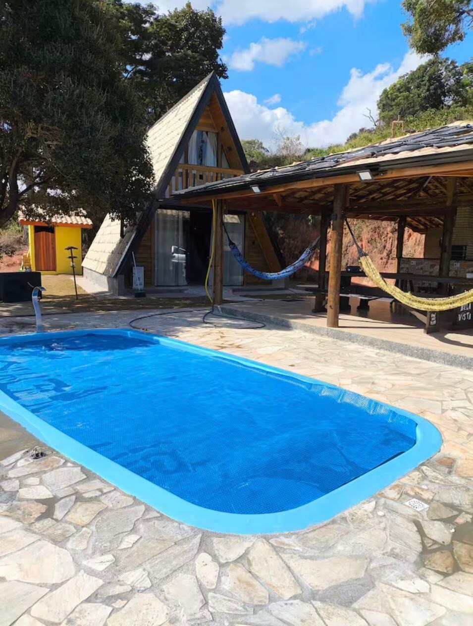 🌅 Chalé Bela Vista: colazione inclusa e vino speciale per prenotazioni di 2 notti! 🌅 🏡 Alloggi • Fino a 4 persone, ideale per chi cerca comfort e privacy; • 2 comode camere da letto; • 2 bagni (interno ed esterno); • Soggiorno con TV e condizionatore portatile; • Biancheria da letto e asciugamani da bagno inclusi.