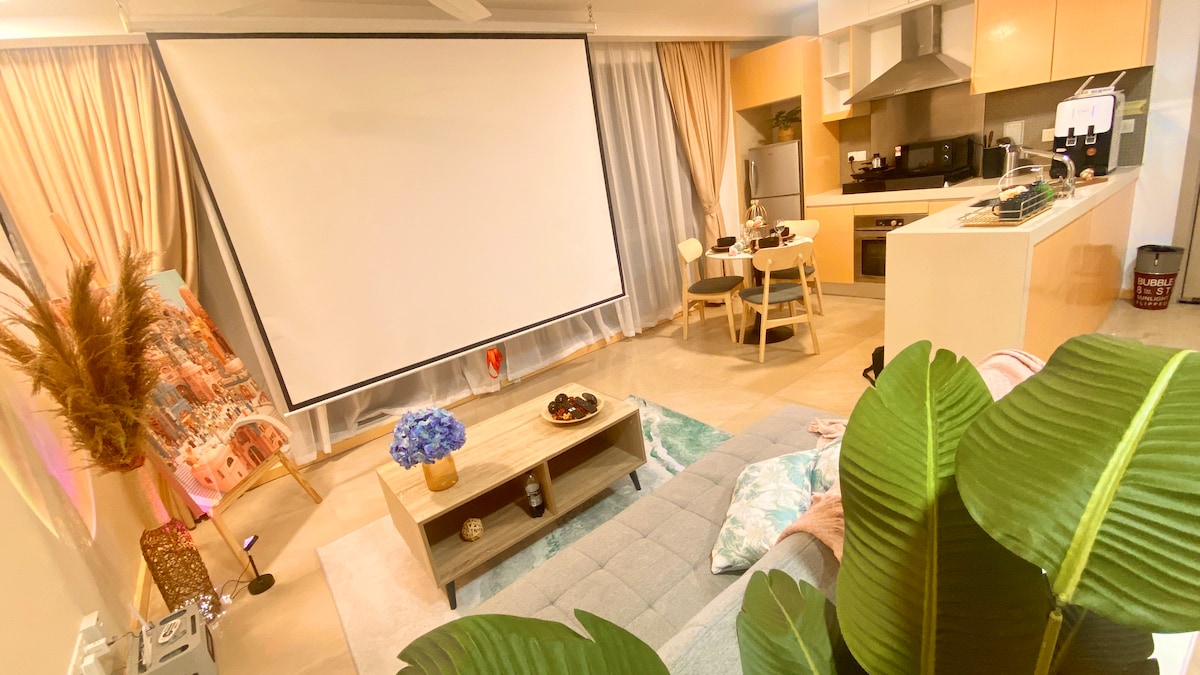 La residenza di📍 Pertama ti dà il benvenuto a Grey City! Questo monolocale è stato creato di recente con tanto amore, combina arredi contemporanei con servizi moderni e un'esperienza che tutto può godersi, in particolare il momento della vasca idromassaggio con il tuo amore e lo schermo del proiettore da 100"con Netflix. Questo posto unico ha uno stile tutto suo, offre un ambiente di soggiorno accogliente, pulito, tranquillo e rinfrescante per le coppie. Vieni a vivere la Grey City! A presto.
