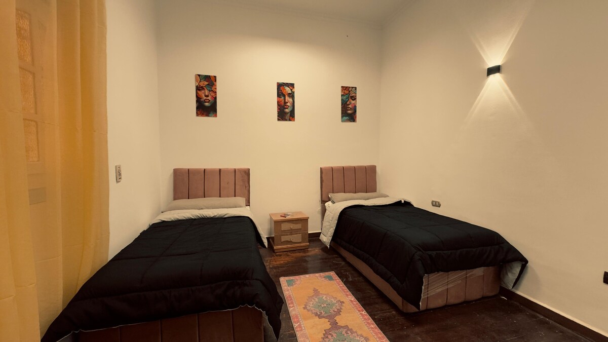 Goditi un confortevole soggiorno in questa camera doppia ben arredata situata al Cairo. La camera è dotata di due comodi letti singoli, lenzuola pulite, aria condizionata e connessione Wi-Fi gratuita, che la rendono ideale per amici, colleghi o viaggiatori che condividono uno spazio. Progettata per il comfort e la comodità, la camera offre un'atmosfera rilassante dopo una giornata intensa trascorsa alla scoperta della città.