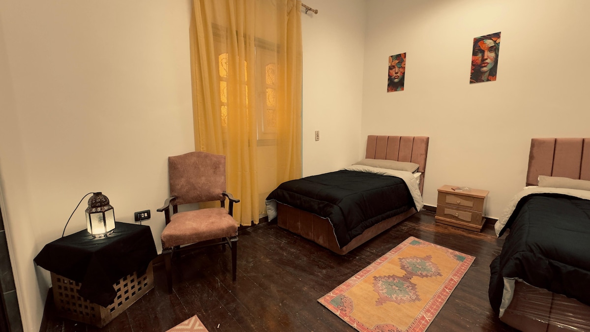 This stylish plaEnjoy a comfortable stay in this well-appointed twin room located in Cairo. The room features two cozy single beds, clean linens, air conditioning, and free Wi-Fi, making it ideal for friends, colleagues, or travelers sharing a space. Designed for comfort and convenience, the room offers a relaxing atmosphere after a busy day exploring the city.