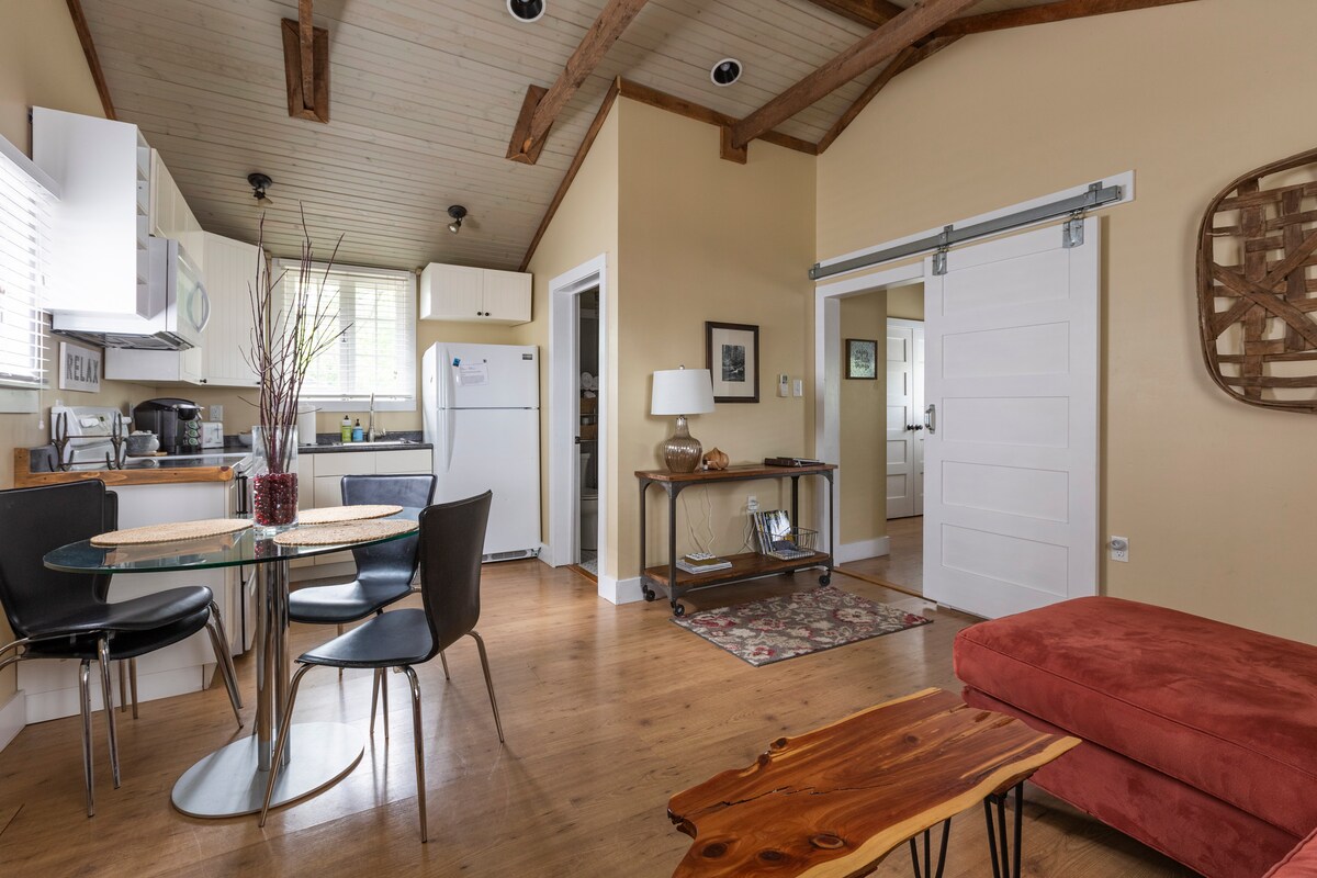 Il Cottage si trova a soli 12 minuti dal centro di Asheville o dalla tenuta Biltmore. Se ti interessa lo shopping, gli outlet sono a soli 10 minuti di distanza. Siamo in un ambiente di campagna, con polli, asini e capre nelle vicinanze. Al mattino presto si possono vedere passare le mongolfiere. Adatto a coppie, avventurieri solitari e chi viaggia per lavoro.