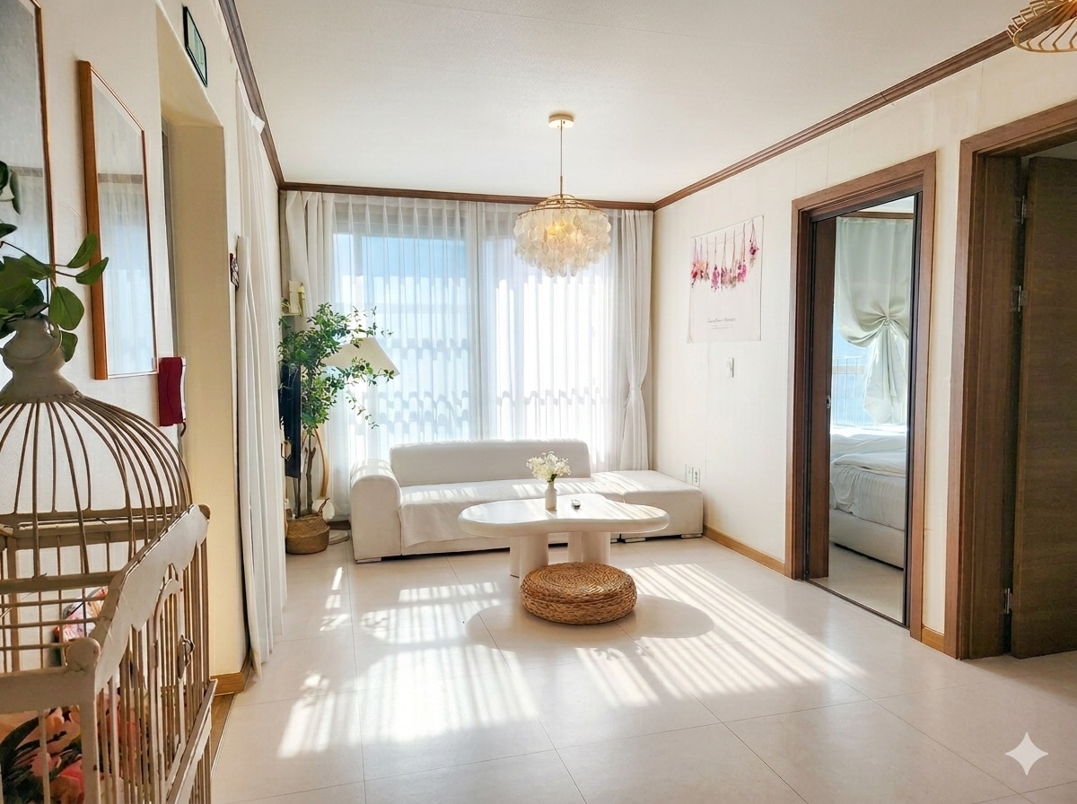 Un soggiorno tradizionale coreano con un'incantevole terrazza dove la brezza leggera crea un'atmosfera perfetta per il relax. Goditi un momento di tranquillità con i tuoi cari, sorseggiando un tè e condividendo conversazioni. In una giornata di sole, fai colazione sulla terrazza sotto la calda luce solare o fai una piacevole passeggiata nel vicino parco. Convenientemente situato vicino agli aeroporti di Gimpo e Incheon, è il luogo ideale in cui soggiornare prima o dopo i tuoi viaggi.