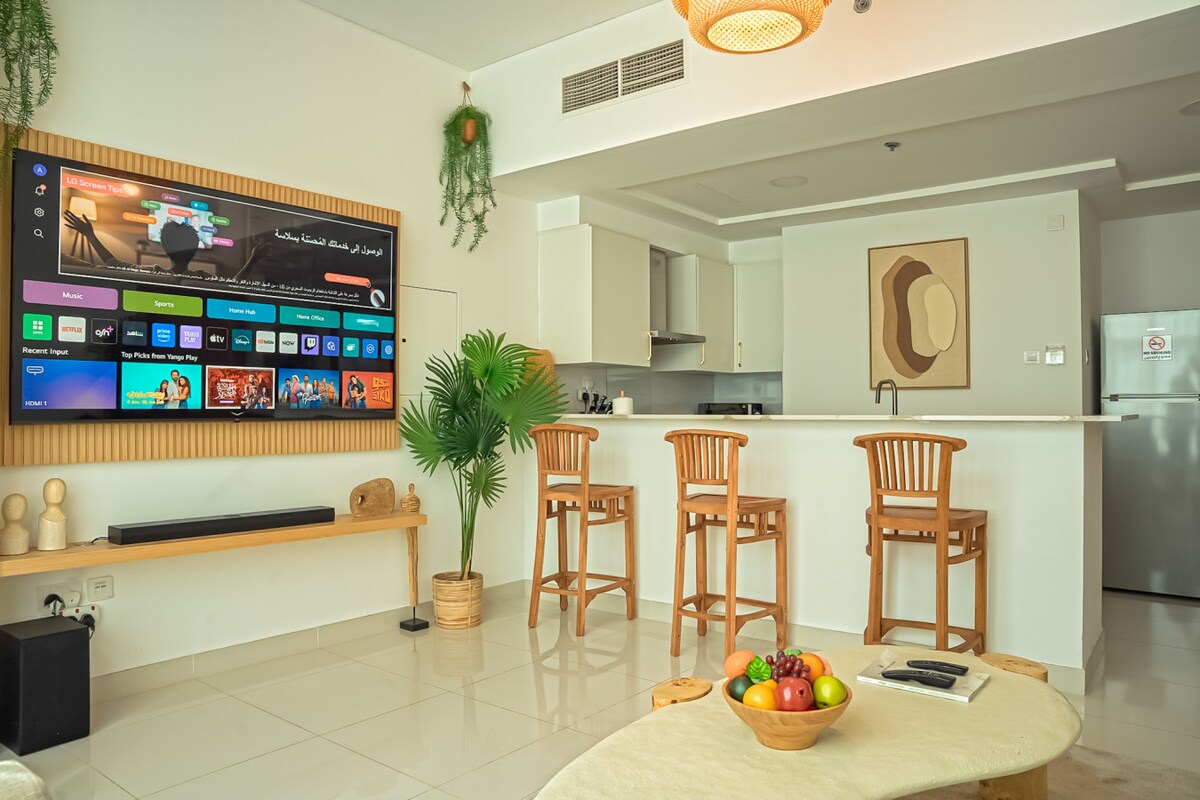 Concediti il lusso del nostro appartamento con 2 camere da letto nel luogo più bello di Dubai, con vista panoramica sul paesaggio urbano del Burj Khalifa e vista sul mare. Rilassati in questa dimora tranquilla ed elegante. Approfitta dei servizi di alto livello dell'edificio, tra cui una piscina a sfioro, una palestra, un'area giochi per bambini, una piscina per bambini, una sala polifunzionale, un campo da badminton e un campo da tennis A ☑️10 minuti dal Burj Khalifa, dal Dubai Mall e dalla SHZ A ☑️14 minuti dagli aeroporti di Dubai A ☑️10 minuti dalla riserva naturale A ☑️18 minuti da Palm Jumeirah
