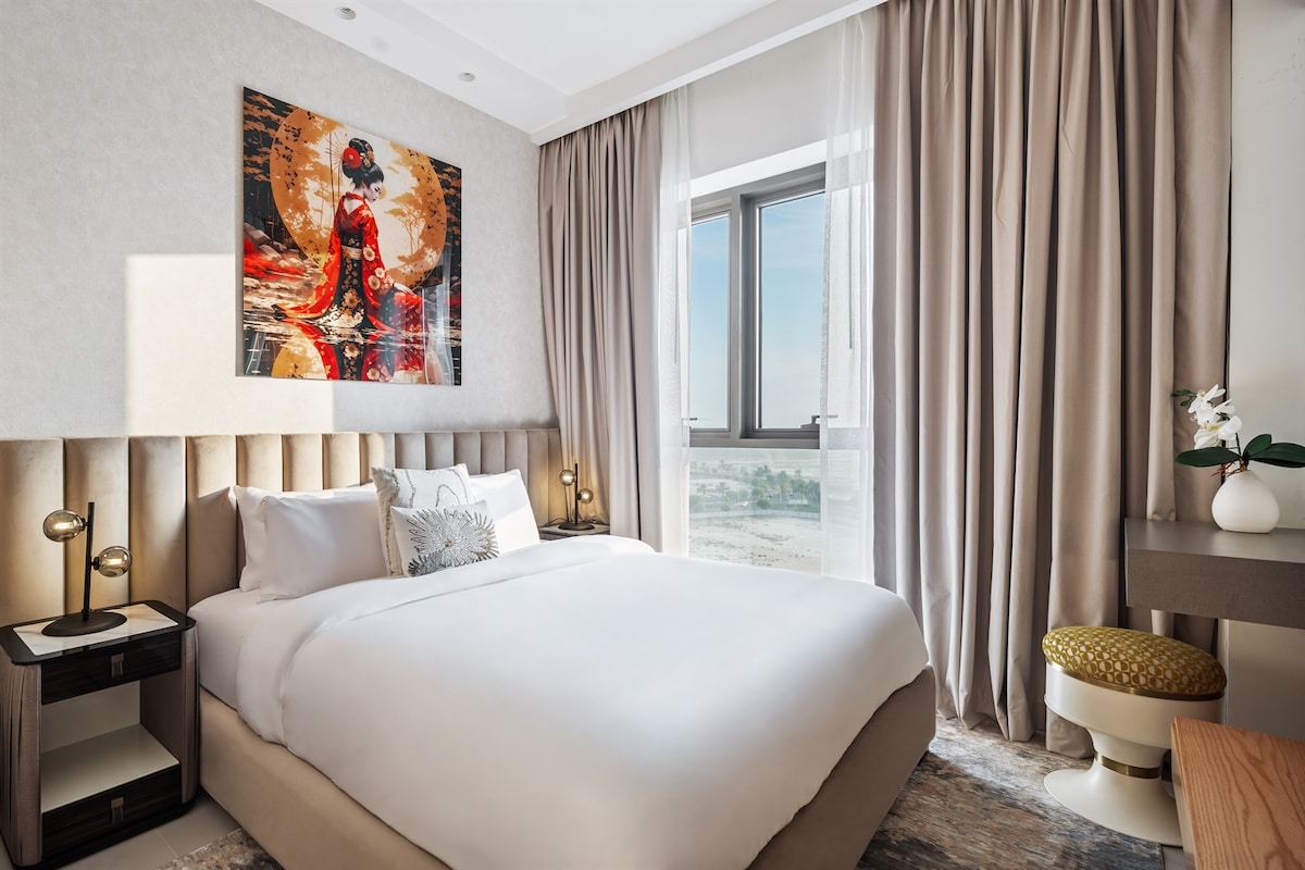 Goditi gli iconici spettacoli di luci a LED del Burj Khalifa dal tuo balcone privato. 🛏️ Comfort per dormire Un letto king size con materasso di alta qualità e un divano letto extra large con materasso a pavimento premium 2×2 metri. 🌇 Vista sul Burj Khalifa con illuminazione a LED Il balcone che si affaccia sul lato dei LED ti offre un posto in prima fila per gli spettacoli serali. 🎬 Intrattenimento ovunque Proiettori compatibili con Netflix e una smart TV per un cinema in ogni stanza. ✨ Tende oscuranti e biancheria da letto di qualità alberghiera per un sonno profondo e ininterrotto.