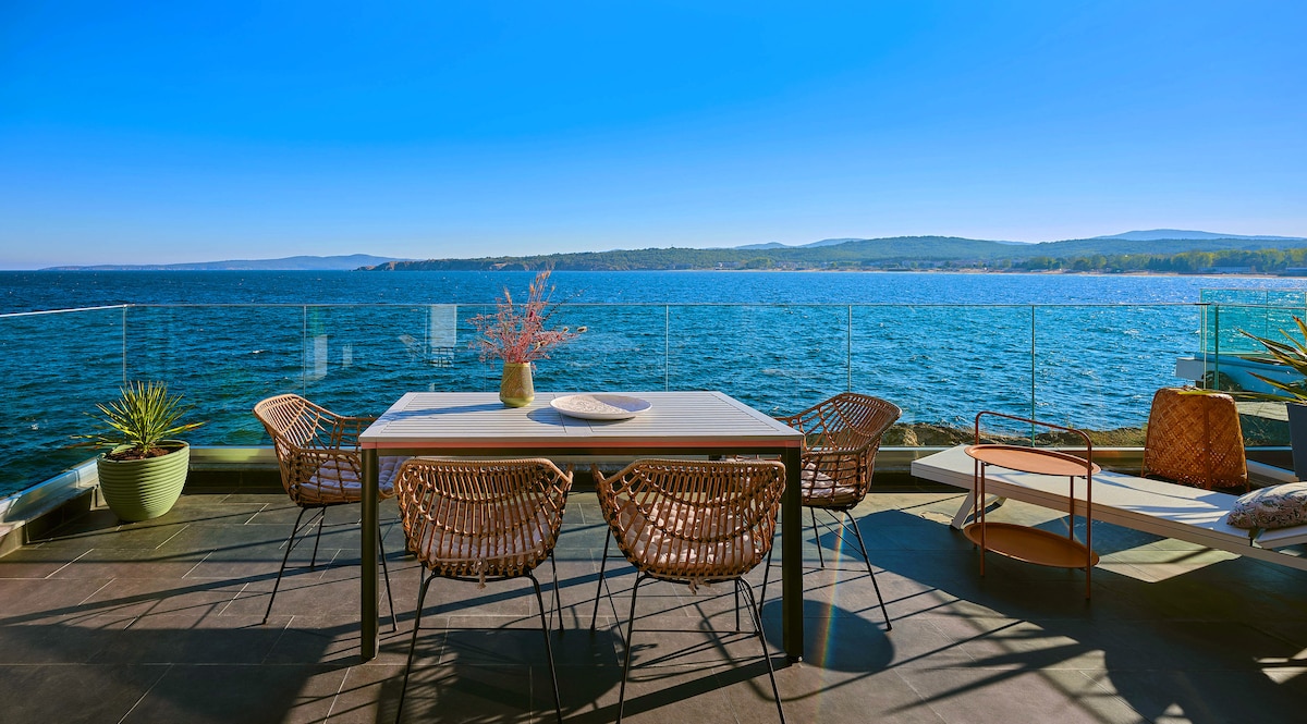 Wake up to the gentle sound of waves, embracing you with a sweet, warm breeze in a quiet and pristine bay. Nestled along the unspoiled Bulgarian Riviera, Ocean Breeze is a rare gem: an elegantly minimalist studio, anchored like a majestic yacht between playful rocks on the Black Sea in ancient town of Sozopol. With uninterrupted panoramic views, perched above the water’s edge, the studio is an enchanting retreat, a place to relax and take in the beauty of the meditative sea. Free parking.