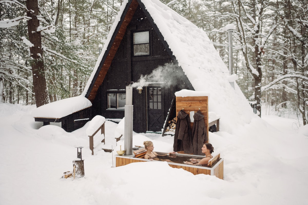Abbiamo un bellissimo Aframe costruito di 1.000 piedi quadrati! Di recente è stato installato un sistema teatrale da 100 pollici nel soggiorno! La baita si trova a Lakes of the North, che offre una vacanza perfetta per l'uomo all'aria aperta. Sentieri affiancati! Offriamo 2 kayak da usare (da trasportare), tavole e sacche da cornhole, percorsi in UTV/ORV, escursioni, rafting al Jordan Valley Outfitter, gite in motoslitta e molti ristoranti raffinati, diverse stazioni sciistiche e brevi gite di un giorno! Inoltre, una vasca idromassaggio a 90 getti per il massimo relax!