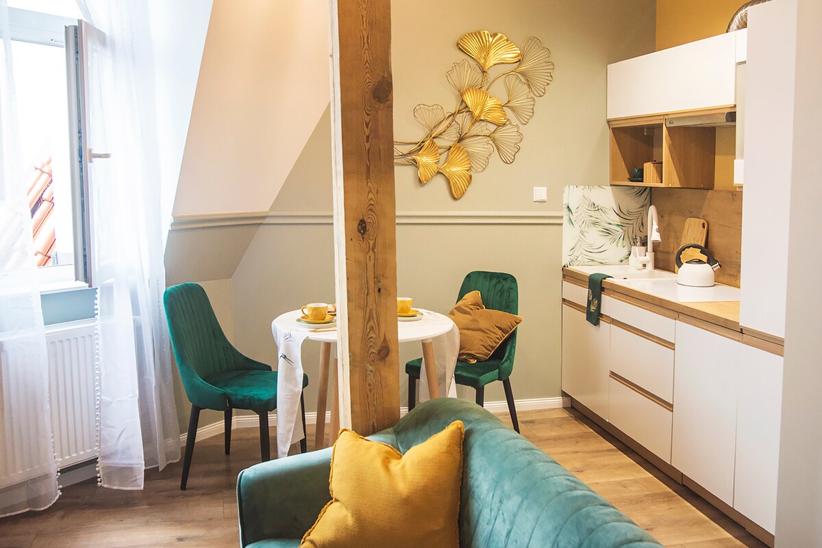 Camelia è un elegante appartamento decorato con colori pastello, situato in un edificio moderno in via Garbary 5, proprio accanto al centro di Bydgoszcz. È uno spazio ideale per chi apprezza sia il comfort che l'estetica, un luogo che delizia con le sue tranquille tonalità oliva e le finiture curate. Con un posto auto gratuito nel garage sotterraneo, un balcone e una posizione ottima, Camelia è perfetta sia per un soggiorno di un fine settimana che per un viaggio più lungo con la famiglia o gli amici.