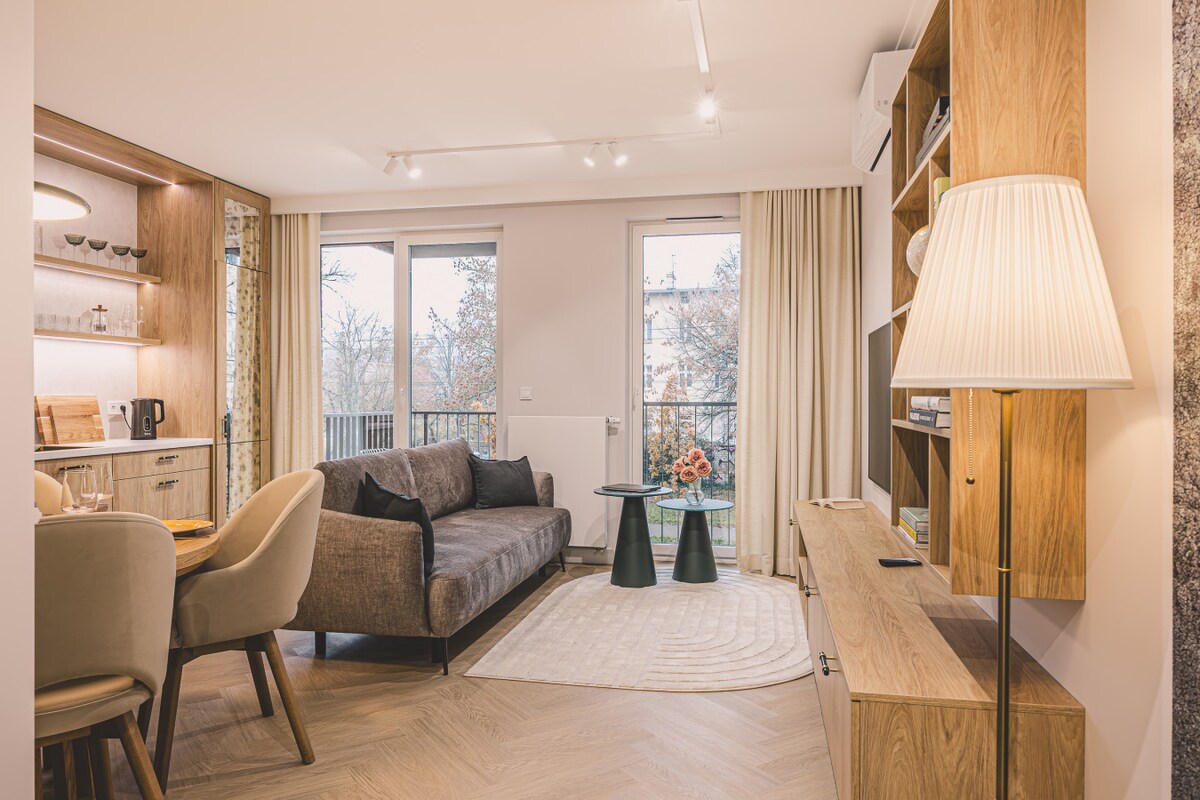 Elegante appartamento nel Quartiere Musicale, nel cuore della città. Nelle immediate vicinanze: Accademia di Musica, Teatro, parchi, ristoranti, caffè. Gli ospiti hanno a disposizione l'intero appartamento composto da una cucina completamente attrezzata, una spaziosa camera con un comodo letto matrimoniale e un divano letto, un bagno e un ampio balcone coperto con un'area relax. Il locale si trova al primo piano di un palazzo, il balcone sul cortile garantisce tranquillità e relax (senza il trambusto della strada).