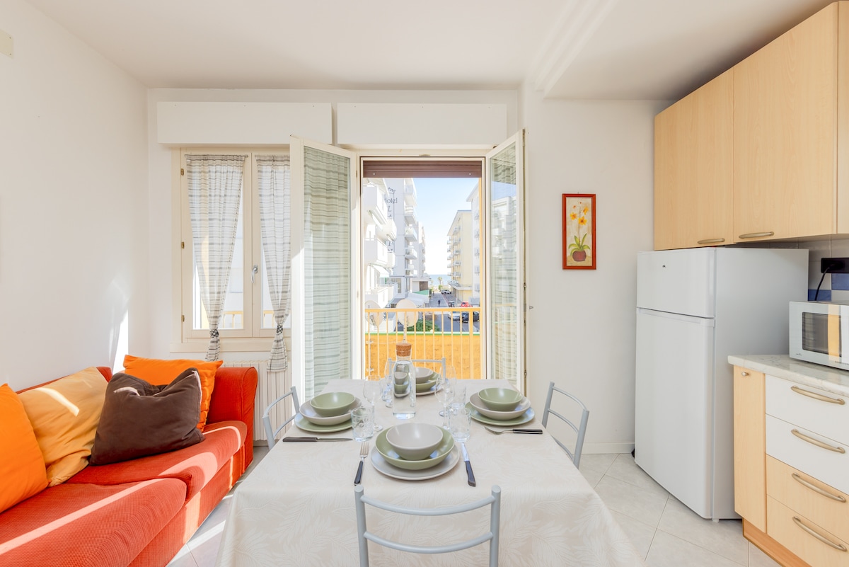 Appartamento in posizione tranquilla a 300 metri dalla spiaggia e a pochi passi dalla zona residenziale di Piazza Milano. L'abitazione è luminosa con posto auto privato, piccolo magazzino, ampio terrazzo soleggiato ed è situata al terzo piano di una palazzina (senza ascensore). A disposizione un'ampia camera matrimoniale con la possibilità di aggiungere un terzo letto, zona soggiorno con divano-letto, cucina arredata e bagno.