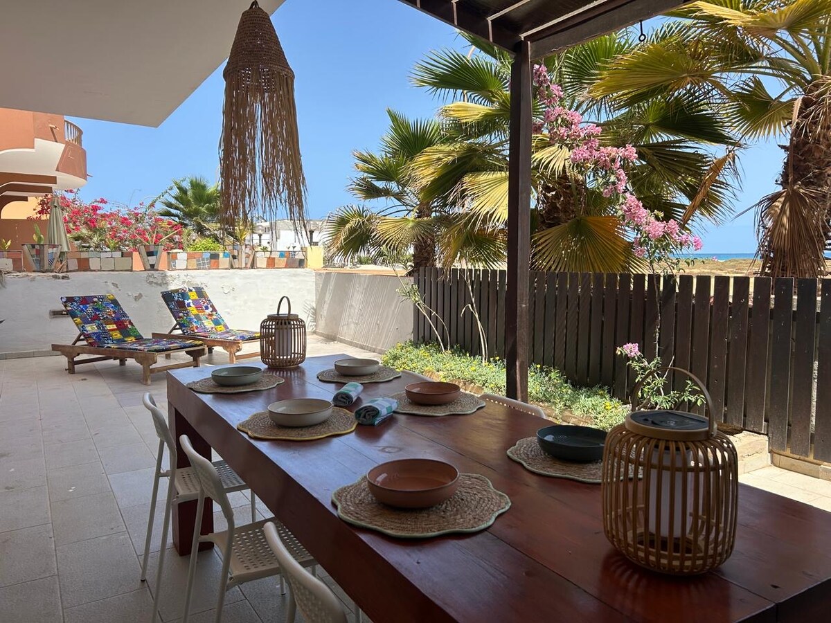 Come live a pleasant stay in a cozy apartment just steps from the Pedonale and especially a few steps from the beach (Pontão side). The apartment has 1 bedroom with queen-size bed, 1 queen-size sofa bed, 1 office, 1 balcony of 6m2 For the Digital Nomad: Have a dedicated office with comfortable chair and wifi. For Kite-surfing, Surfing, Diving: - Titik Surf & Kitesurf School, <1 min on foot - Santa Maria Center, <1 min on foot - Surf Hub Cabo Verde, <5 min on foot
