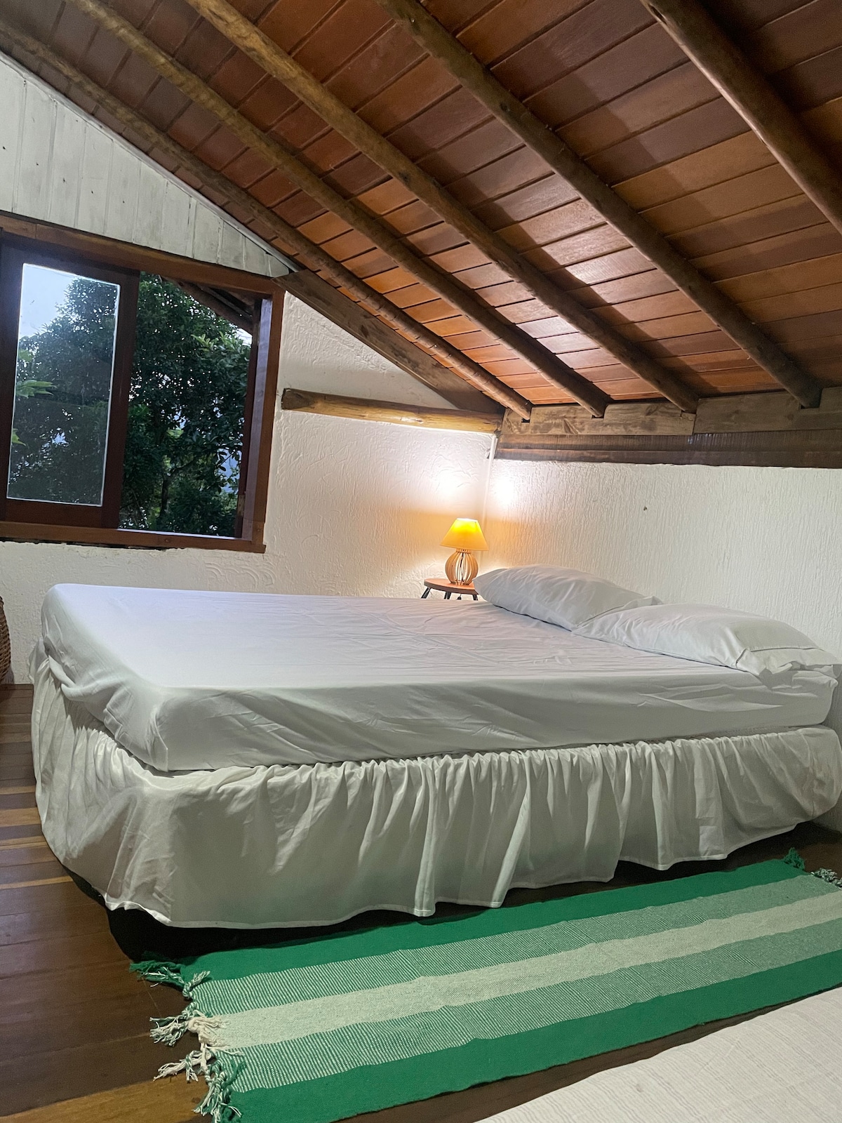 Chalé para até 4 pessoas em Trindade Um refúgio perfeito na Vila de Trindade! Nosso chalé foi pensado para casais que buscam conforto, privacidade e contato direto com a natureza. Com vista deslumbrante para a mata, piscina e o mar. O chalé é completo e sustentável, equipado com energia fotovoltaica, ar-condicionado, TV, cozinha completa e banheiro privativo. Ideal para relaxar após um dia de praia. Viva dias inesquecíveis cercado de natureza e tranquilidade.