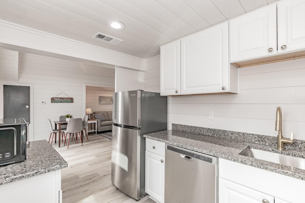 Divertiti con la famiglia in questo elegante cottage completamente ristrutturato. Un sacco di aree all'aperto per rilassarsi vicino a un braciere o cenare all'aperto. Spiacenti, Animali domestici non ammessi. WIFI, giochi da tavolo, lavatrice/asciugatrice, cucina con piani di lavoro in granito, forno a microonde, pentole e padelle, piatti e posate. Sul retro della proprietà non c'è accesso al lago, ma c'è una meravigliosa vista lago e un'insenatura dal lago. Non sono ammessi animali domestici. Se viene portato un animale domestico nella proprietà, verrà applicata una tariffa di 200 $.