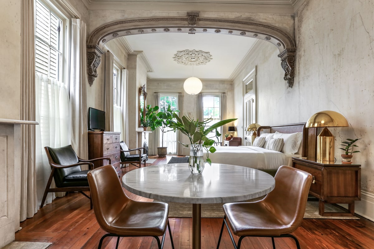 "In tutti i nostri viaggi non abbiamo mai soggiornato in un alloggio più delizioso e suggestivo." "assolutamente immacolato e splendidamente decorato." "A tre volte il prezzo, sarebbe comunque un affare." A 1 miglio da Tulane U, a 3 miglia da Bourbon Street/French Quarter/WWII Museum, a 2 miglia dal tram St Charles, a 3 miglia da Garden District Letto king size Bed Bagno privato TV di grandi dimensioni Tranquillo, sicuro, Uptown tra le università e il Quartiere francese Balcone Parcheggio gratuito Wifi veloce Aria condizionata/riscaldamento centralizzato
