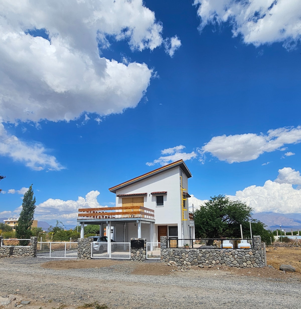 Una casa cálida y luminosa para hasta 7 huéspedes, con vistas espectaculares a los cerros desde todos sus ambientes. Distribuida en dos plantas, cuenta con amplios balcones y terraza para disfrutar del entorno natural.