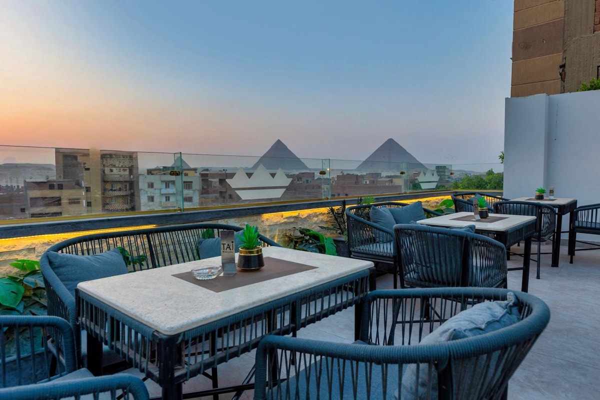 A soli 3 km dalle Piramidi e dal Grande Museo Egizio, il nostro rifugio boutique unisce panorami senza tempo a un servizio personalizzato. Goditi tramonti mozzafiato dalla terrazza panoramica con vista sulle piramidi e rilassati in un ambiente elegante e tranquillo. Con un'ospitalità calda e attenta in ogni momento, il nostro hotel offre una fuga serena dove comfort, cultura e cura si uniscono per creare un soggiorno davvero indimenticabile.