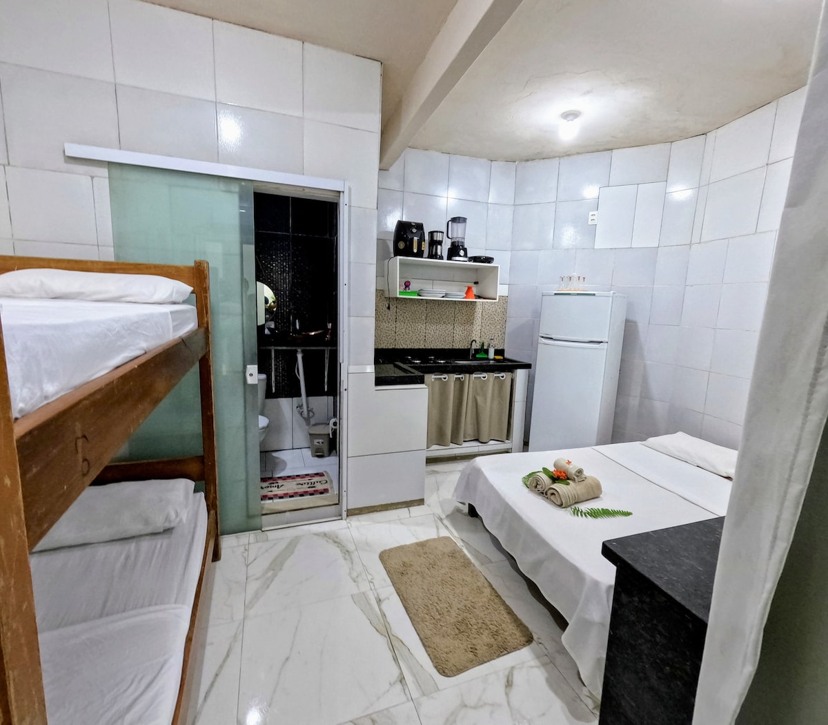 Appartamento sulla terza spiaggia, luminoso, posizione strategica vicino alla strada principale di Morro de São Paulo. L'appartamento dispone di WIFI gratuito, biancheria da letto e da bagno di ottima qualità. Cucina di supporto per la colazione e pasti semplici. L'appartamento è molto vicino a tutto. Dispone di balcone e lo spazio è ideale per famiglie e amici. Può ospitare fino a 5 persone. Dispone di una camera da letto con letto matrimoniale e 1 letto singolo e nel soggiorno ci sono 2 letti singoli.