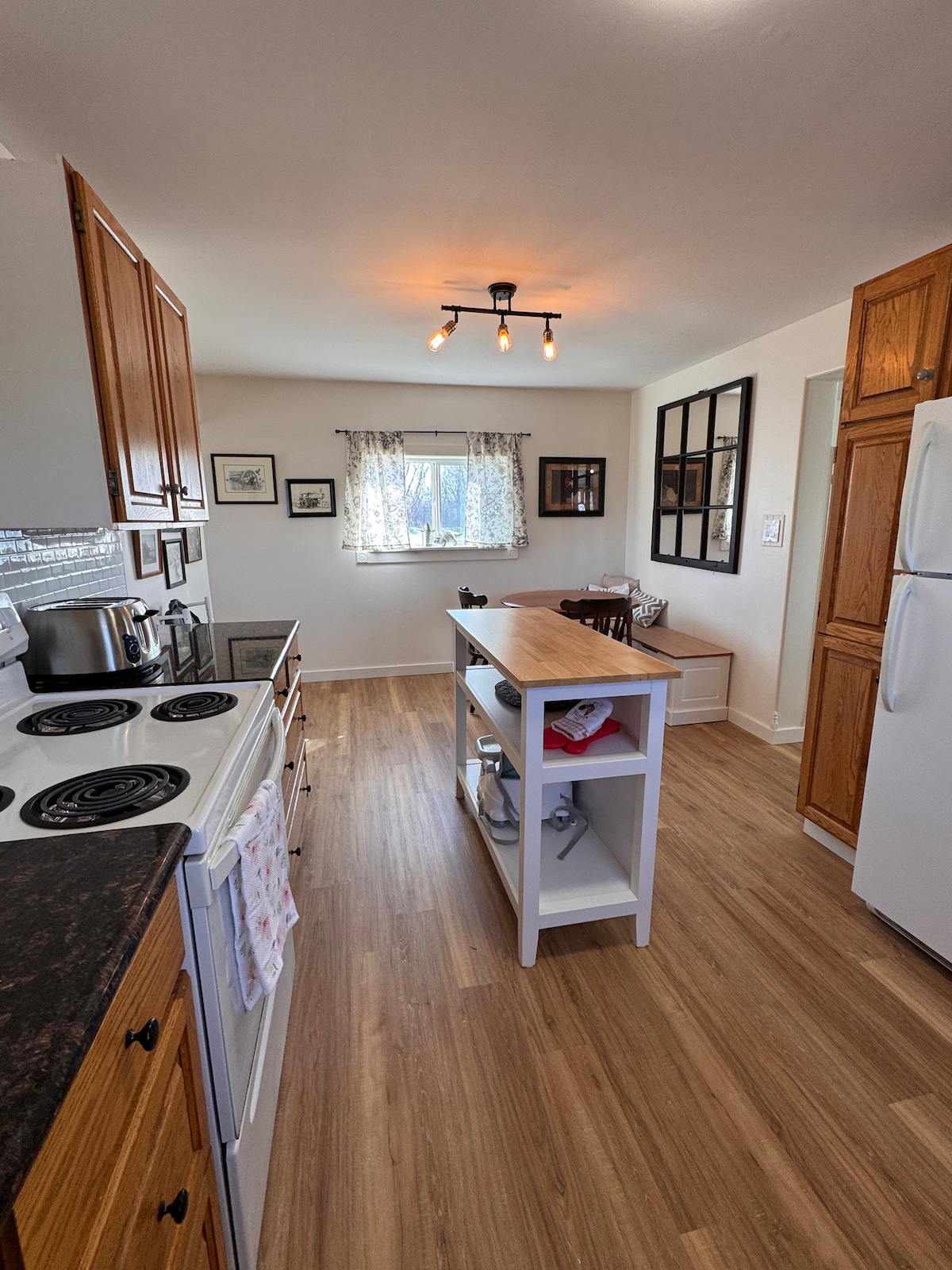 Vieni a rilassarti e assaporare un assaggio del paese al RTR Ranch con il nostro dormitorio di 450 piedi quadrati appena ristrutturato di 1905. Dotato di cucina, soggiorno, camera da letto e bagno interno con vasca idromassaggio e cabina doccia in vetro. Coccolati sul divano per un film o all'aperto sul dondolo del portico ammirando le stelle. Dopo una buona notte di sonno, goditi il tuo caffè sull'altalena in veranda o una passeggiata nel ranch! Caffè, tè, cioccolata calda e farina d'avena confezionata. C'è molto altro da godere a RTR!