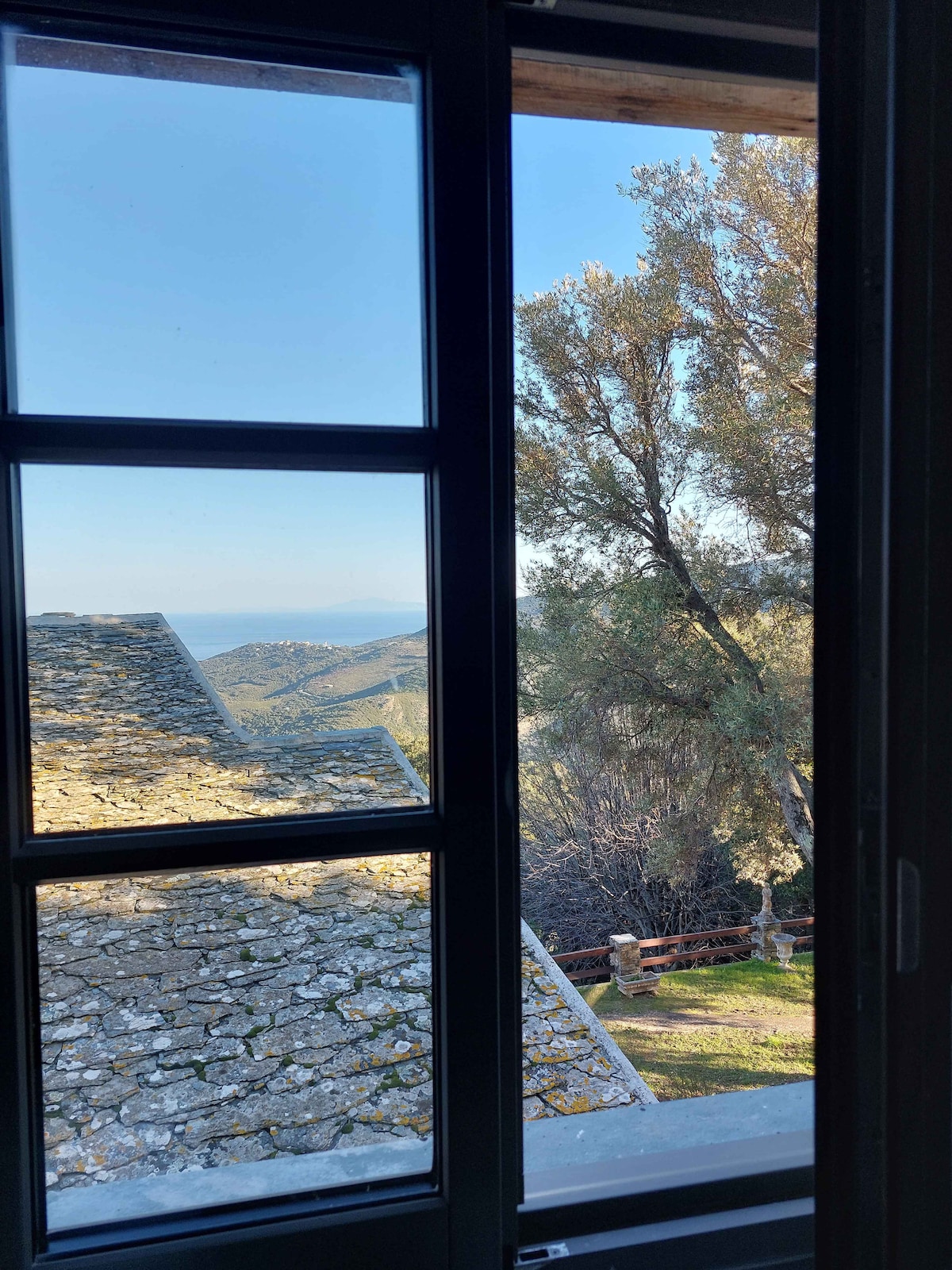 camera di 20 mq con bagno e angolo cottura completamente attrezzato: frigorifero, piano cottura, forno/forno a microonde, bollitore, macchina per il caffè, tostapane, tv, con vista sul villaggio e sul mare tra i castagneti, mare a 6 km, piccola terrazza con tavolo e sedie per godersi l'esterno la colazione non è inclusa, se lo desiderate possiamo fornire il necessario per la preparazione di una colazione e offriamo anche un servizio di consegna di pasti su ordinazione