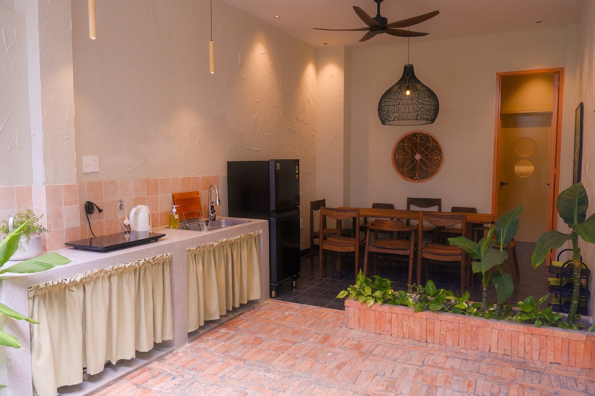Mình Về Homestay è un nuovissimo alloggio situato nel cuore di Nha Trang, a soli 300 metri dalla spiaggia. Progettata per gruppi di massimo 6 adulti, la casa offre tutto il necessario per un viaggio confortevole: una cucina completamente attrezzata, una lavatrice e asciugatrice interne e un servizio di pulizia regolare. Tutte e tre le camere da letto sono dotate di proiettore, scrivania e abbondante luce naturale. L'intera casa è calda e accogliente, e il 4° piano dispone di una rilassante vasca da bagno, perfetta per rilassarsi dopo una giornata in città.