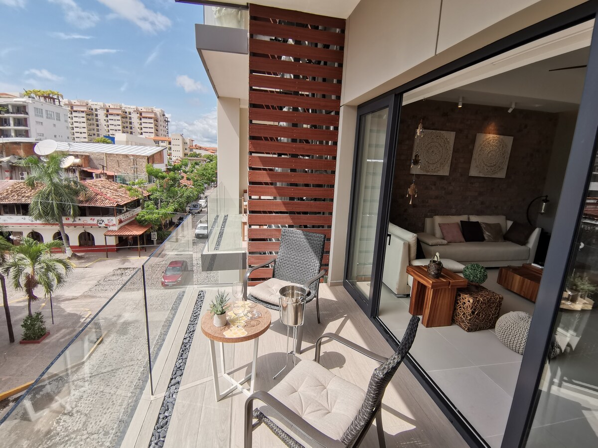 *Riparazione della piscina sul tetto: maggio-giugno 2025 Monolocale di lusso nella posizione migliore di Puerto Vallarta, a pochi passi dalla spiaggia di Los Muertos e dai migliori bar e ristoranti, situato nel cuore della Zona Romantica. Questo appartamento è uno dei migliori appartamenti in questa zona. Il mio alloggio è perfetto per le coppie, gli avventurieri solitari o anche per chi viaggia per lavoro. Ti godrai la vista dal tetto ammirando l'alba e il tramonto. Questa unità si trova al 3 ° piano di fronte alla montagna con un balcone privato.