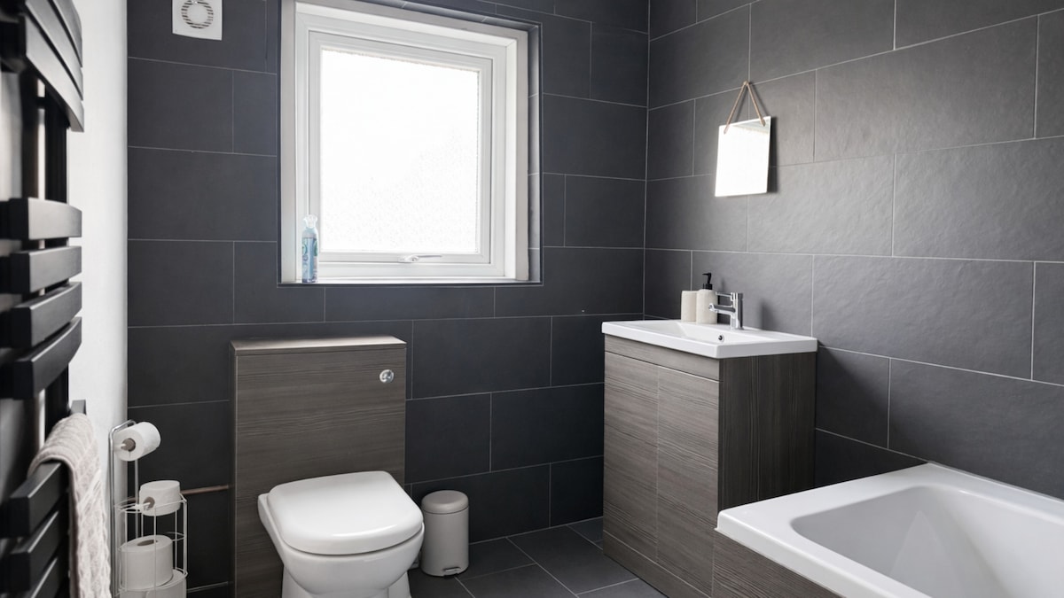 Accogliente casa con terrazza nel centro della città, 2 camere matrimoniali e 1 singola con un piccolo futon nel salotto, se necessario. Stufa a legna e un'ampia zona pranzo. A 10 minuti a piedi dalla stazione. A 20 minuti dalla città. 1 posto auto privato di buone dimensioni, ma l'accesso al parcheggio può essere difficoltoso. Il parcheggio è gratuito in strada la sera (dalle 18:00 alle 10:00) e nei fine settimana (dalle 18:00 del venerdì alle 10:00 del lunedì). È possibile parcheggiare gratuitamente in qualsiasi momento a meno di 5 minuti a piedi. Essendo una casa vittoriana, ha scale ripide e si trova su più livelli al primo piano.