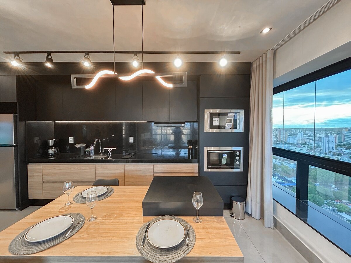 Monolocale moderno a Jardim dos Estados, con vista panoramica e struttura completa. Può ospitare fino a 4 persone (letto matrimoniale + divano letto, ha aria condizionata, Wi-Fi a 300 mbps, cucina attrezzata, due Smart TV e garage coperto privato. Nell'edificio: piscina riscaldata, piscina a sfioro, sauna secca, centro fitness, co-working, sala giochi e lavanderia (a pagamento). Concierge 24 ore su 24, ascensore panoramico e tanti comfort in una delle migliori posizioni della città.