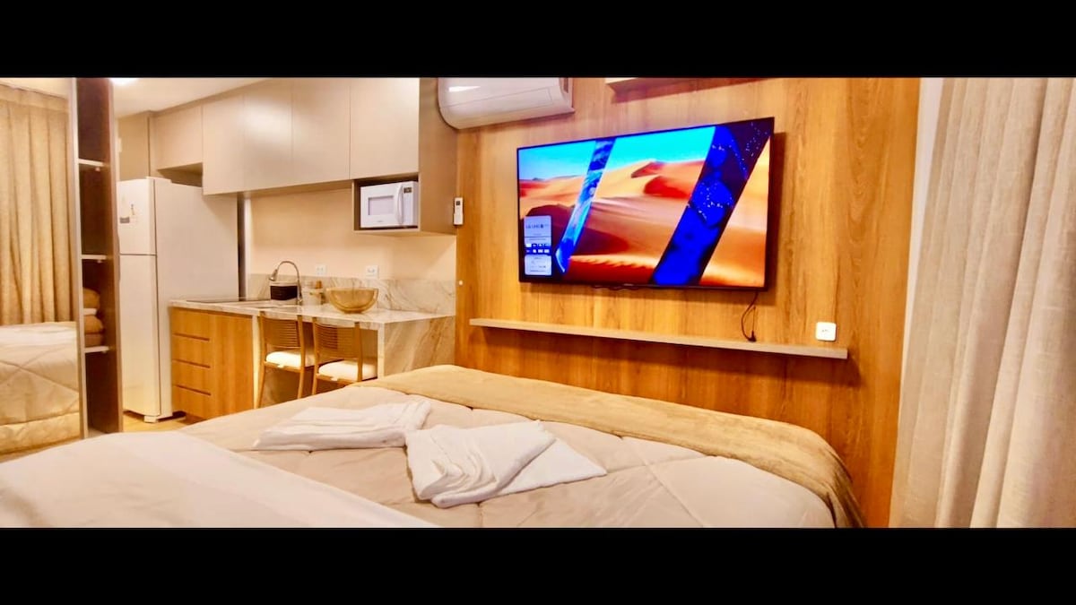 Monolocale completo nel Condominio Club, zona centrale di Curitiba, vicino al centro commerciale Mueller e ai supermercati. Il condominio dispone di piscine fredde e riscaldate, sauna, palestra completa, rooftop e mini mercato 24 ore su 24. Home office con Wi-Fi per riunioni e studi. Galleria con fruttivendolo, caffè e ristoranti. Appartamento con Smart TV e Wi-Fi. Self check-in a partire dalle ore 14:00. Check-out fino alle 11:00. ☕Opzionali: Parcheggio coperto all'interno del Condominio (R$ 30,00/giorno) Colazione (prezzi su richiesta)