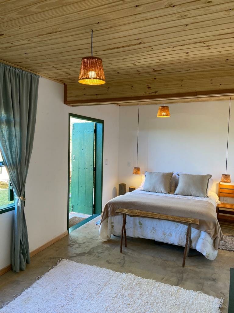Nuovo tennis quadratico sulla spiaggia! Chalet super caldo in una zona tranquilla ai piedi della Pedra Grande. Sembra uno chalet di campagna, circondato da aria verde e pulita, ma in realtà siamo all'interno della città, vicino a tutto! Abbiamo un panorama mozzafiato e un tramonto riflesso nell'acqua, ci fanno ringraziare ogni minuto delle opportunità che abbiamo! Il fuoco del pavimento è perfetto anche per le lunghe conversazioni con vino e chitarra!