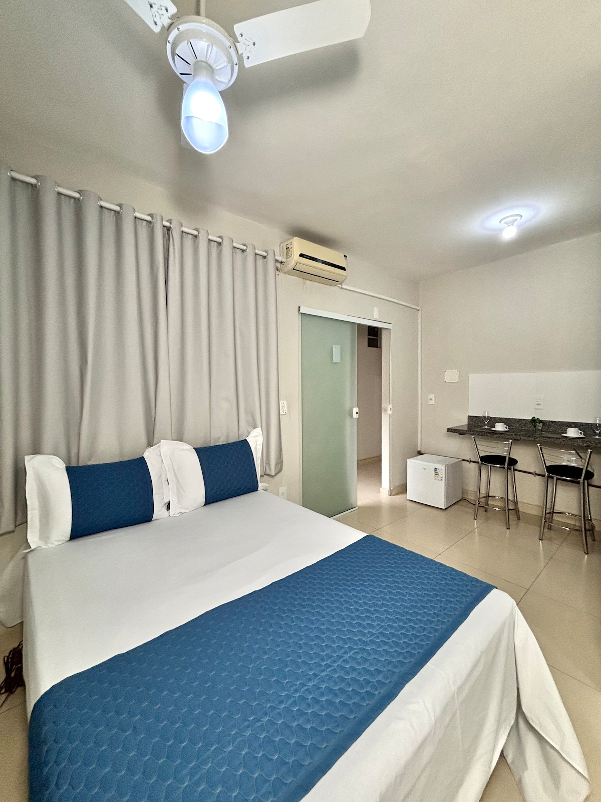 Appartamento completo presso l'America Hotel & Residence Building, nella migliore posizione della città. Spazio con camera, ufficio, cucina completa, bagno e 1 posto auto coperto. Include aria condizionata, TV a pagamento e internet a banda larga con wifi. Ideale per 2 o 3 persone. Il divano letto matrimoniale permette a 4 persone di dormire comodamente. Il condominio dispone di una struttura completa con piscina, sauna, ristorante, palestra, spazio per bambini e altro ancora. Se ti interessa, affitto anche mensilmente.