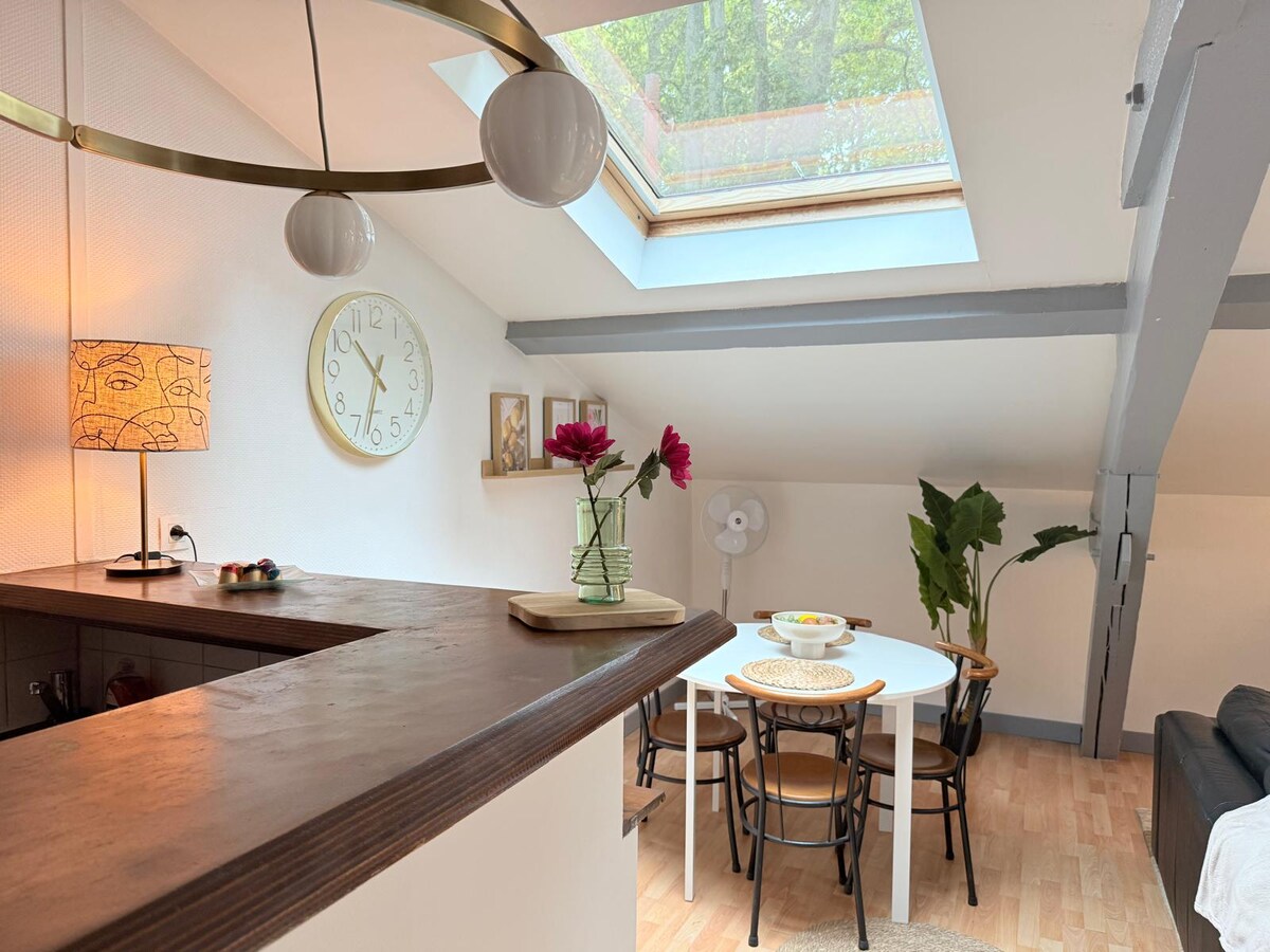 ✨ Accogliente bilocale duplex – metropolitana Compans a 1 minuto, centro città Elegante duplex dall’arredamento curato. Piano terra: accogliente soggiorno e cucina completamente attrezzata. Al piano superiore: camera da letto accogliente, bagno e area di lavoro dedicata, ideale per il telelavoro o un soggiorno di lavoro. Comodità e praticità nel cuore di Tolosa. - Biancheria, asciugamani e prodotti di cortesia inclusi. 🔑 Check-in autonomo 24 ore su 24, 7 giorni su 7, per un soggiorno senza pensieri.