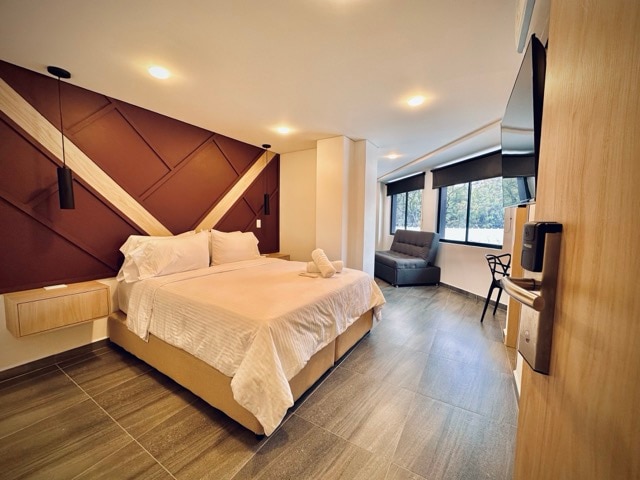 Dietro l'elegante esterno in metallo della torre di Meridiano si nasconde un nuovissimo segreto industriale-chic. Situato nel cuore del quartiere alla moda di Provenza, a Medellín, Meridiano offre sistemazioni all'avanguardia che renderanno indimenticabile il tuo soggiorno nella posizione più esclusiva della città. Il progetto è stato ideato dall'architetto più alla moda della Colombia. Se cerchi un'atmosfera da SoHo in un ambiente verde, questo è il posto che fa per te.