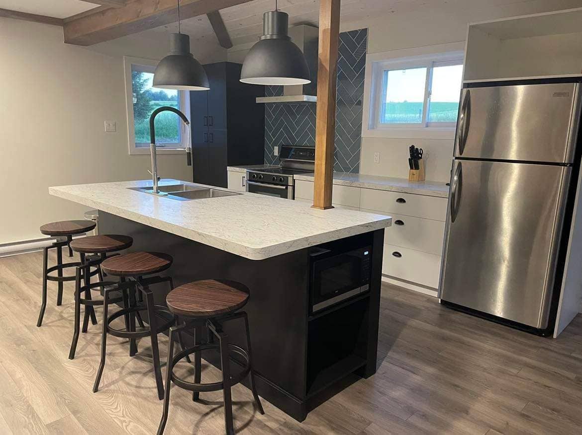 Ogni angolo del nostro chalet è ispirato al fiume. La grande star è lui. Inoltre, il suo nome, Le St-Lo, è il diminutivo di Saint-Laurent. Ogni angolo del nostro cottage è ispirato al St. Lawrence. È il protagonista. In fact, its name, Le St-Lo, is the diminutive of St. Lawrence in Italian.