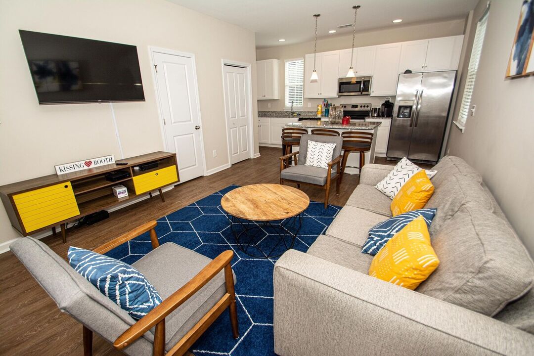 Questa splendida e moderna unità "B" con 3 letti/2 bagni adatta agli animali domestici può essere affittata da sola o con l'unità "A" per creare la vacanza perfetta per tutta la famiglia! Ogni lato offre privacy quando necessario e il cortile consente a tutta la famiglia di riunirsi. Può ospitare comodamente fino a 5 ospiti in totale, 10 se entrambi i lati del duplex sono prenotati. Dai un'occhiata ai nostri golf cart a benzina che ti porteranno alle bellissime spiagge di Garden City, al negozio di alimentari e