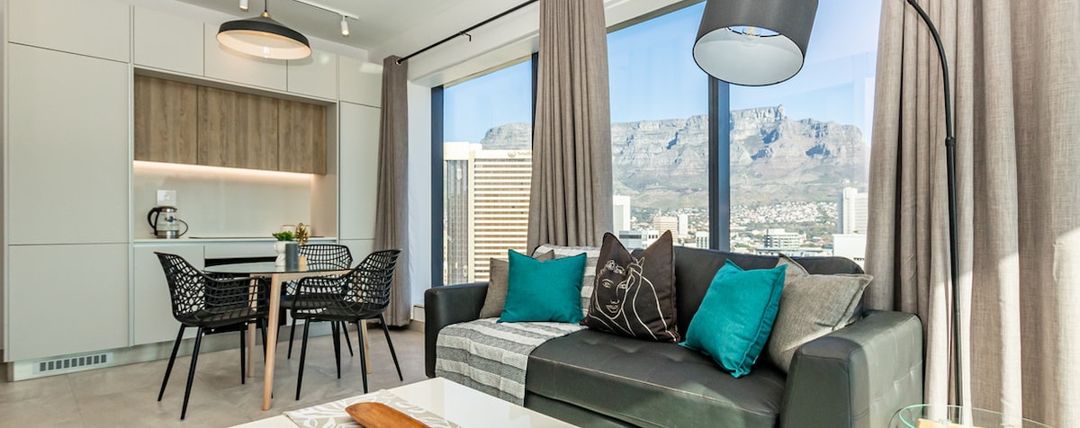 Situato al 5° piano con portineria 24 ore su 24, questo appartamento moderno a pianta aperta, immacolato e spazioso, si trova a De Waterkant, una delle zone più alla moda di Città del Capo. Vanta una vista mozzafiato sulla Montagna della Tavola da tutte le finestre. Balcone privato. L'appartamento dispone di una spaziosa camera da letto, una moderna cucina con forno elettrico e lavastoviglie, e una confortevole zona soggiorno e pranzo. Accesso a Netflix e wifi ad alta velocità su una TV da 60 pollici. Comodo e sicuro parcheggio sotterraneo.