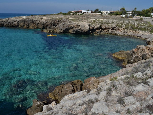 Appartamento in stile vintage Salentino, ristrutturato di recente con grande gusto e tutti i comfort. Spazio esterno fruibile ed impagabile discesa al mare privata che rende esclusivo e solitario il bagno in calette e vasche naturali scavate negli scogli anche nei giorni di maggior fermento dell’estate! L’appartamento è parte di un complesso a picco sul mare che ha un grande giardino condominiale, uno spazio riservato dove poter mangiare sotto le stelle e a picco sul mare ed usare il barbecue