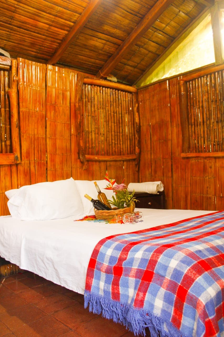 Desconecta de tus preocupaciones en este espacio amplio y sereno, perfecto para disfrutar solo o en pareja, rodeado de naturaleza. Cuarto doble, jacuzzi y zona de fogata. Puedes disfrutar de nuestras zonas comunes como nuestro mariposario a cielo abierto y de los magníficos atardeceres. La cabaña no tiene cocina, sin embargo, en el lugar contamos con nuestro propio restaurante donde ofrecemos un menú con opciones muy variadas.