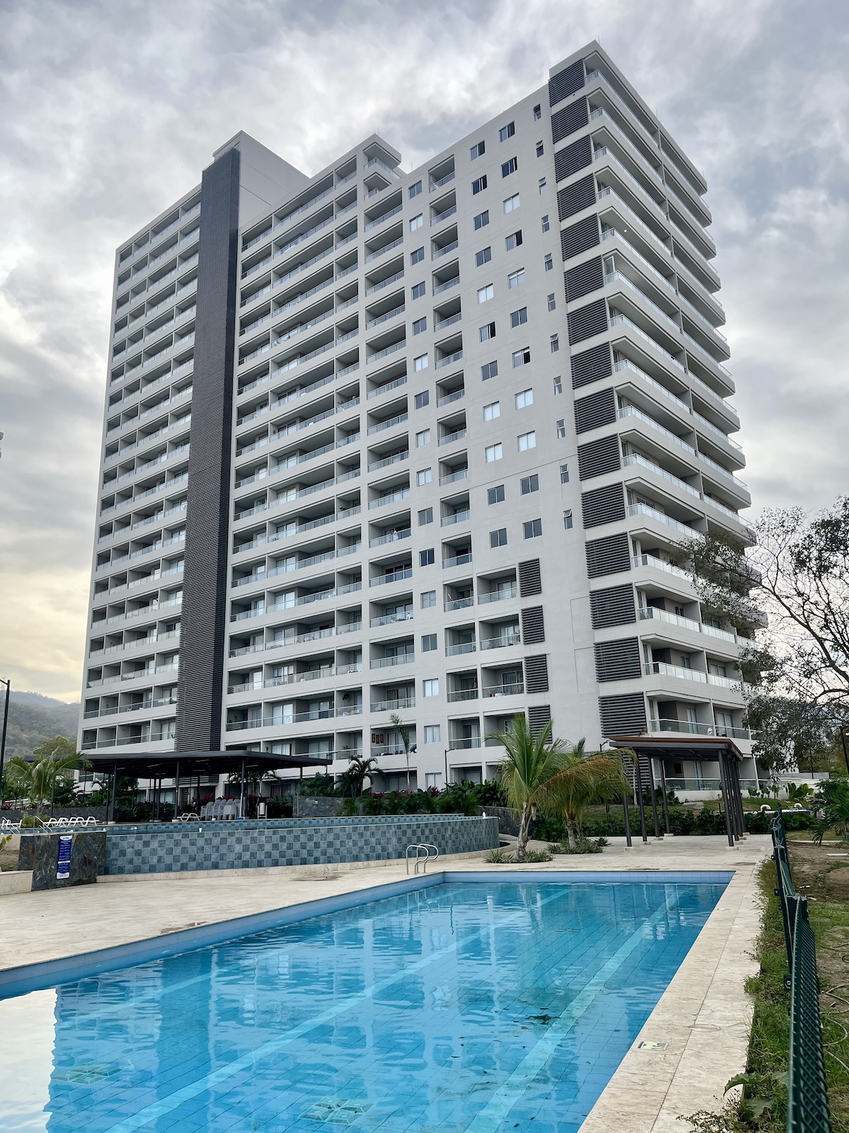 Disfruta este moderno loft en el piso 16 con una vista espectacular que te acompañará en todo momento de dia y de noche. Espacio luminoso, fresco y perfectamente distribuido, ideal para parejas o viajeros que buscan confort y estilo. Cuenta con cocina equipada, zona social acogedora y un ambiente relajante para descansar después de un día de playa o turismo. Un lugar pensado para desconectar y disfrutar de una estadía inolvidable.