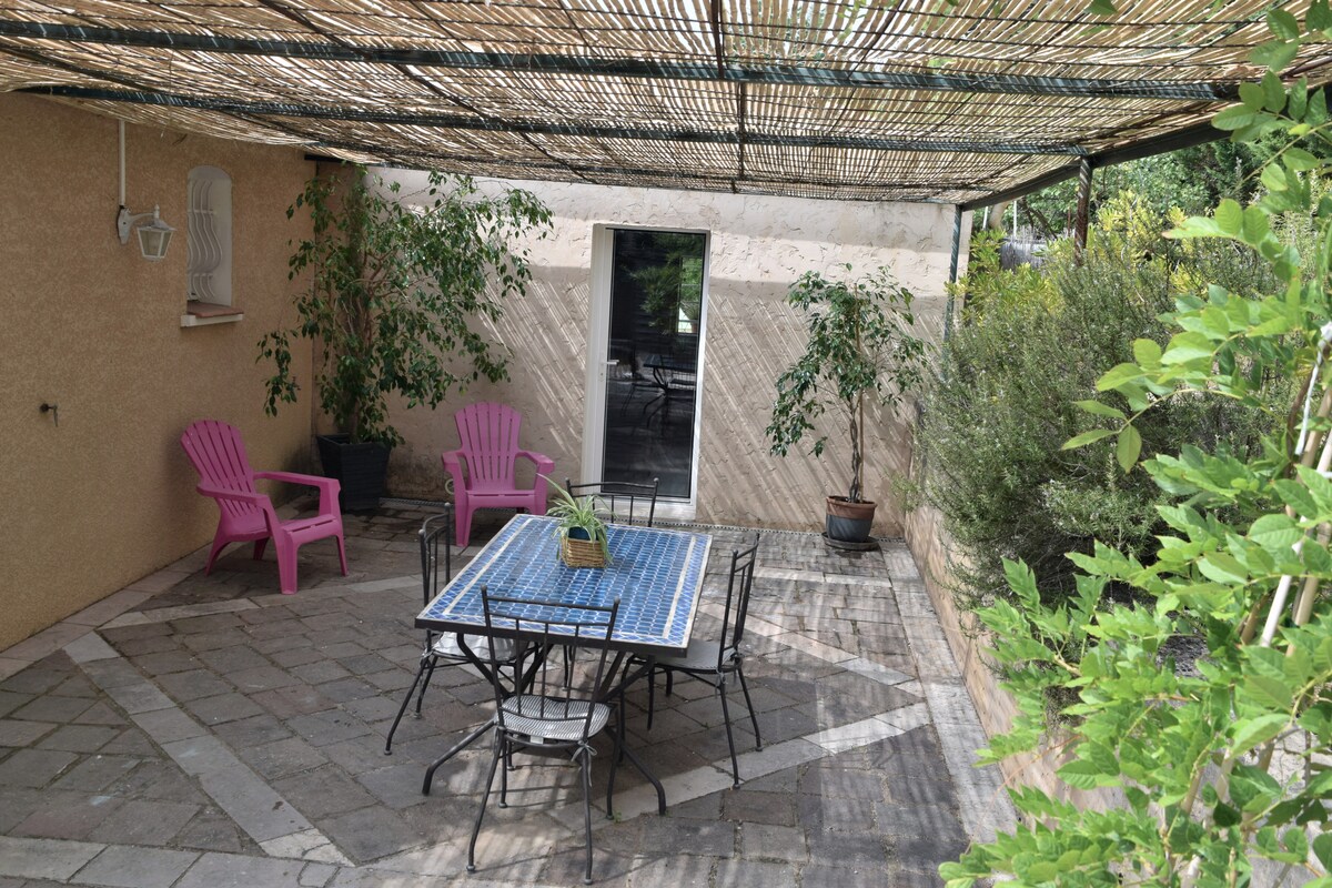 Jolie studio complètement rénové pour passer d'agréable vacances aux portes de la cité de Carcassonne (10 min en voiture) Une terrasse ombragée vous promettra de bons moments de repos. Idéal pour un couple. Un parking sécurisé vous sera proposé. Cuisine équipé, TV et accès internet De nombreuses activités à proximité : la cité, le lac de la Cavayère, accro branche, château cathares, canal du midi. Pour information: - l'accès à la chambre se fait par un escalier type échelle meunière.