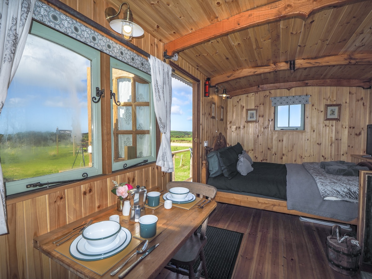La Big Cwtch Shepherd's Hut è stata progettata e costruita in loco pensando al comfort. La nostra capanna di lusso vanta un letto king-size, una zona cucina, un frigorifero e un bagno. Due poltrone si affacciano attraverso una finestra a tutta lunghezza su una vista pittoresca della gloriosa campagna indisturbata, la costa vicina. Immergiti nella tua esclusiva vasca idromassaggio elettrica e goditi la vista delle stelle nel cielo notturno incontaminato del Galles occidentale. Fai una breve passeggiata per rilassarti e rigenerarti nella sauna all'aperto e nella piscina fredda.