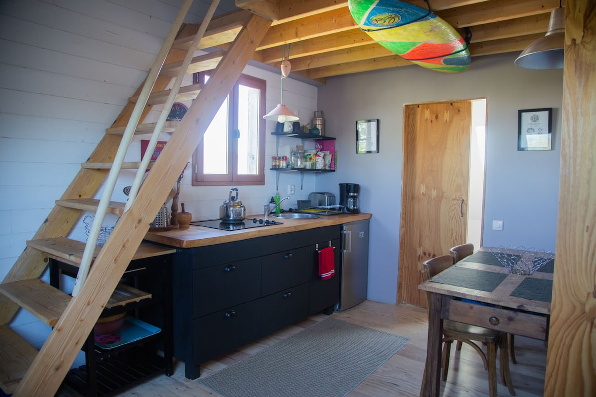 Loft al piano superiore di un laboratorio di scenografia, grafica e altro, in una casa di legno ai margini del borgo. Accettiamo l'affitto a notte (escluso il fine settimana, minimo 2 notti) tutto l'anno tranne l'estate (luglio e agosto) dove privilegiamo l'affitto a settimana, con arrivo il venerdì (altro su richiesta). Servizi nelle vicinanze e raggiungibili a piedi, spiagge, surf e dune a meno di 2 km. Apprezzerete questo spazio per la sua originalità e la sua posizione.