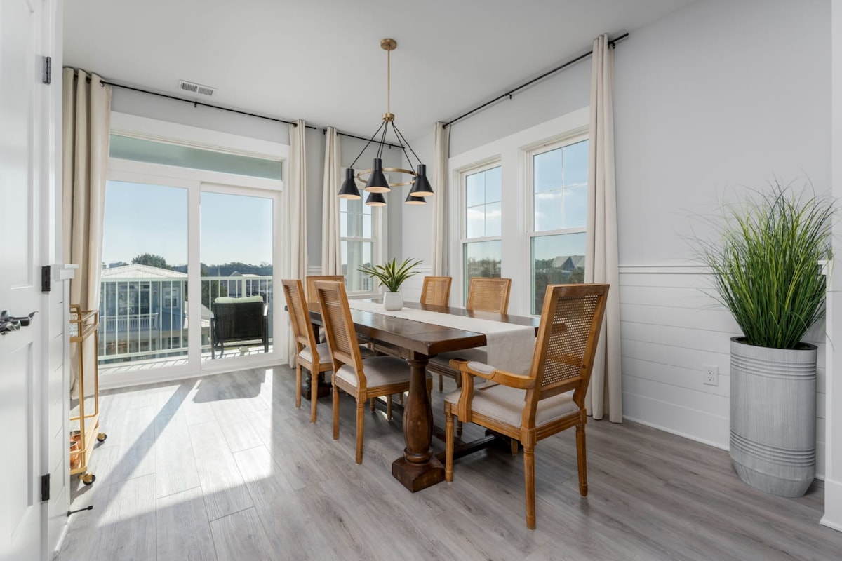 Exquisitely designed 3 BR + office / 2 full BA. New-build, family friendly! Light-filled living room with electric fireplace, kitchen & large dining area. Private suite with King and spacious BA w/ rainfall shower. Down the hall is a second BR with Queen and third BR with two twins, sharing full bathroom with tub. Office space, 2 covered porches, laundry, off-street parking, blackout shades, crib/high chair & sleeper sofas. A short walk to dining & shopping and 20-minute drive to the beach!